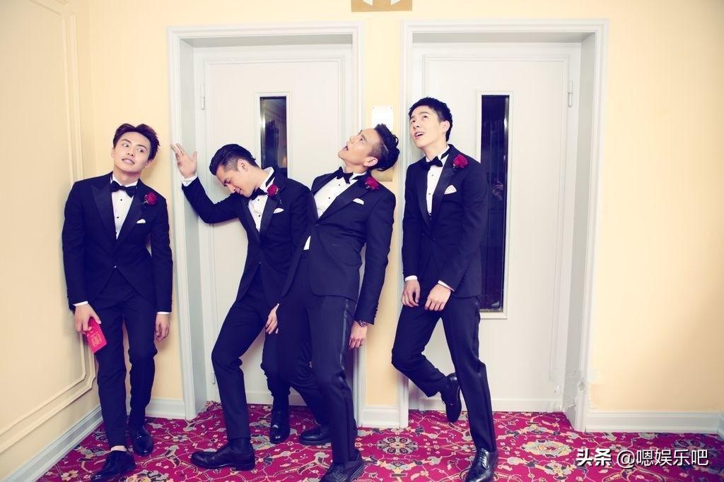 她们的婚礼最强亮点就是“最帅伴郎团”,由彭于晏、刘昊然、胡歌、马天宇组成,他们身着统一的黑西服风度翩翩,这颜值随手拍张照就是杂志大片,超级帅气养眼呢!