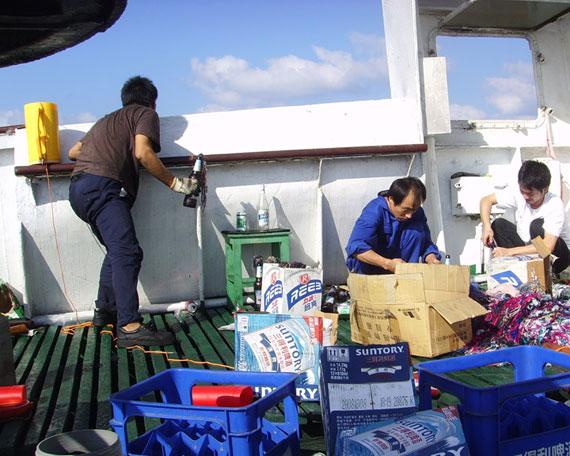 4个小时时间,振华4号上的船员,足足扔出了500多个啤酒瓶。有些啤酒都没来得及喝,直接打开把酒倒掉,然后装入汽油、油漆水,最后连辣酱瓶和酱油瓶,都拿来做燃烧瓶了。船员们后来说,回来的路上一个月时间,大家一口酒都没喝上。